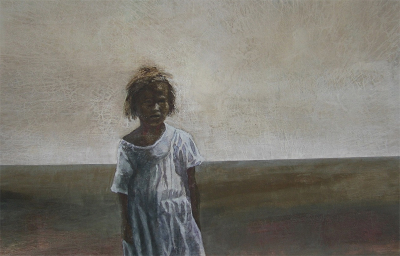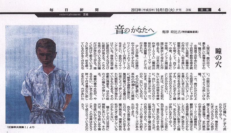 近藤幸夫の絵画は決して、声高に、ありとあらゆるこの世界の不正に対し、抗議を示したりはしない。明らかに反体制を訴えるような 荒ぶるものは描かれていない。表面に直ぐそれとわかる様に描かれていないだけで、必要のない物が削ぎ落とされた美しさの奥に 画家の静かな情熱が音をたてている。世界を常に見つめる瞳がある。まるで鞘から抜かれることのない美しい日本刀の様に。世界の現在、未来を静かに見守っている。 その精神の在り方を私はとても美しく思う。
