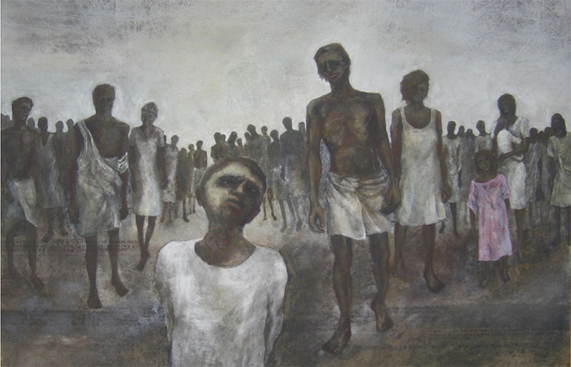 1975年インド、西アジア、中東方面へ旅をしました。貧困、紛争、過酷な社会状況や厳しい自然の中で生きる人々、何の屈託もないように見える子どもたち、瞳の奥に憂いと希望の兆しを感じました。その春にベトナム戦争が終結し、アジアでは国境を越え旅ができた奇跡的な時期がありました。しかし、今日まで絶えることのない戦渦を旅の日々に予測することはできませんでした。写生をさせてくれた照れくさそうに微笑む子どもたちが、その後にたどった壮絶な人生を思うと胸が詰まりそうになります。 旅をした地域はいつの日か訪れなければならないこのプロジェクトの目的地であり、そこに生きた人々の希望こそが国境なき美術展 “すべての人へ芸術をArt for All”の原点です。